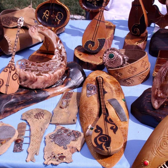 На ярмарке будут представлены изделия из керамики, красочные пиджаки и халаты, войлочные панно и ковры ручной работы, казахстанские сувениры, национальная посуда, серебряные и бисерные украшения, сумки и игрушки ручной работы из натуральных материалов, украшения с казахстанскими агатами и сувениры из натурального камня, войлочные изделия и уютные тапочки.