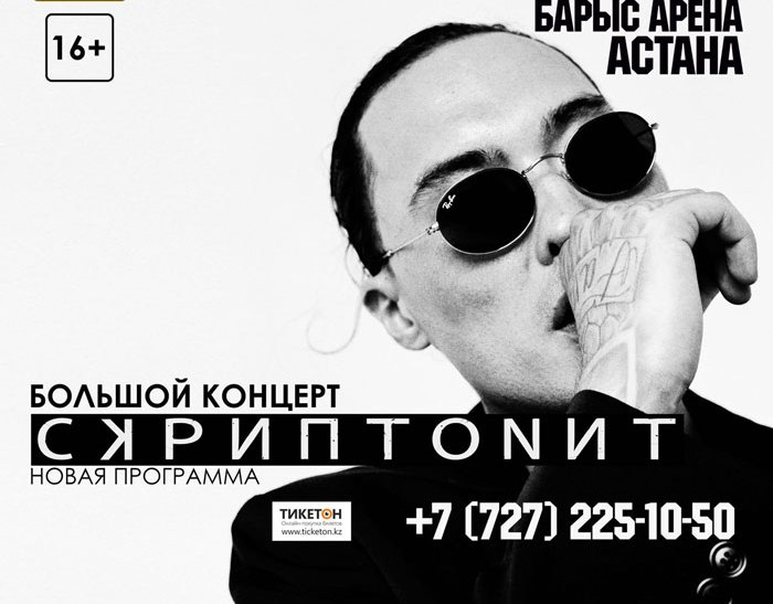 На сцене "Барыс Арены" пройдет большой концерт Скриптонита. Скриптонит (Адиль Жалелов) - казахстанский рэп-исполнитель и битмейкер, участник российского лейбла Gazgolder. Впервые громко заявив о себе в 2013 году видеоклипом на песню VBVVCTND, спустя два года Скриптонит выпустил свой дебютный альбом "Дом с нормальными явлениями", который стал одним из самых удачных русскоязычных рэп-альбомов 2015 года.