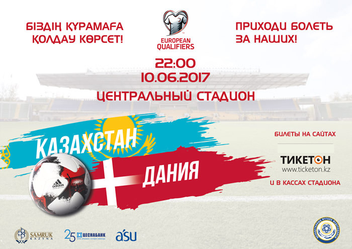 На Центральном стадионе в Алматы в рамках квалификации к чемпионату мира по футболу 2018 года встретятся сборные Казахстана и Дании. Казахстан не проигрывал в домашних матчах квалификации. Обе встречи на "Астана Арена" завершились ничьей, 2:2 (Польша) и 0:0 (Румыния). Несмотря на последнее место, Казахстан все еще сохраняет математические шансы на 2 место и стыковые матчи в борьбе за выход на чемпионат мира 2018 года.
