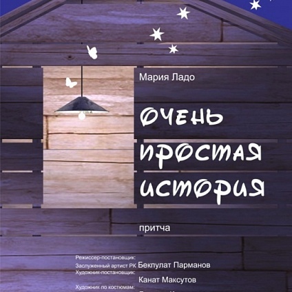 Спектакль "Очень простая история" поставлен в театре имени Горького по пьесе молодого киевского драматурга Марии Ладо. Действующими лицами в этой пьесе выступают не только люди, но и домашние животные - Лошадь, Корова, Петух, Пес, и даже ангелы. С недоумением следят животные за своими хозяевами, потому что, по мысли автора, души животных от природы чисты, им неведомы зависть, корыстолюбие, предательство.
