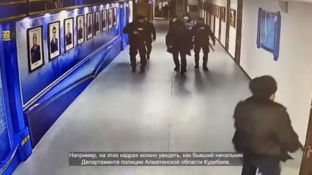 "Во время январских событий в ряде регионов руководители местных подразделений КНБ и департаментов полиции отдали приказ подчиненным покинуть рабочее место. Например, на этих кадрах можно увидеть, как бывший начальник Департамента полиции Алматинской области Кудебаев, являвшийся на тот момент комендантом, покидает здание полиции", - говорится в описании.