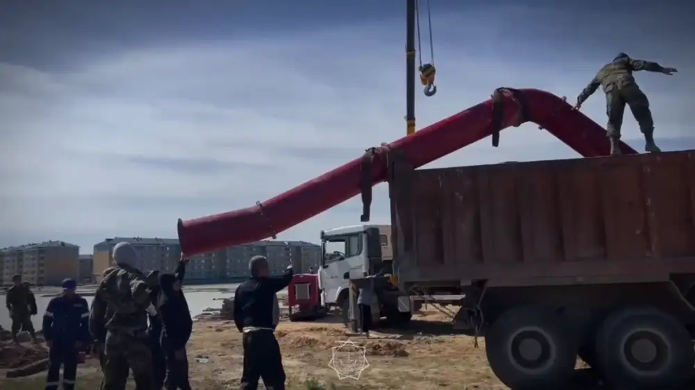 "Аварийно-спасательные работы в городе продолжаются. На кадрах туркестанская группировка откачивает воду с помощью передвижных насосных станций, производительность которых составляет 500 литров в секунду", - сообщили в ведомстве.
