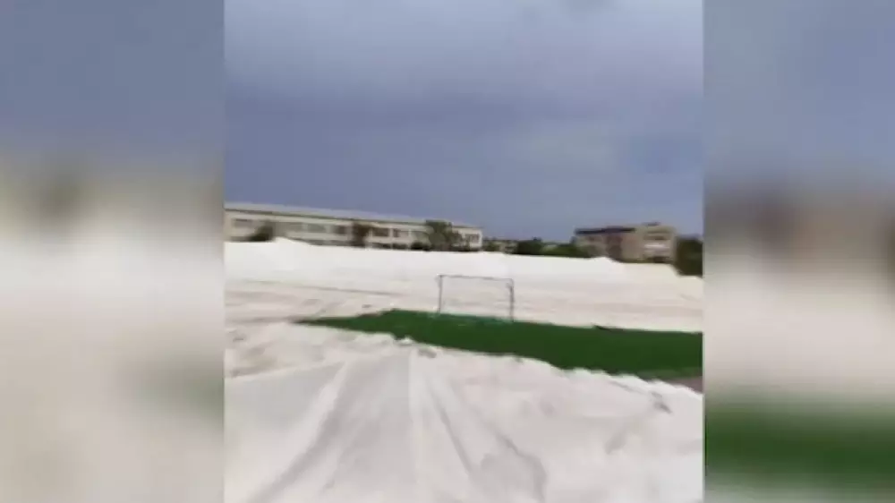 Инцидент произошел 6 августа в 14:30. Из-за сильного ветра с обеих сторон сорвался купол футбольного поля.