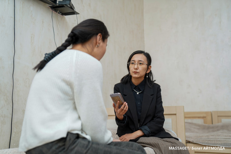 "Қыз-келіншектер келген соң психолог маманмен тікелей жұмыс істейді. Көптеген әйел мұнда келгенде есеңгіреп қалады. Біз екі күн бойы оны мазаламауға тырысамыз. Себебі ол өз-өзіне келіп, қауіпсіз жерде екенін сезінуі керек. Содан кейін ғана жағдайын сұрап, мән-жайын білеміз. Психологпен жұмыс олардың еңсесін көтеріп, сенімділігін арттыруына көмектеседі", - деді ол.