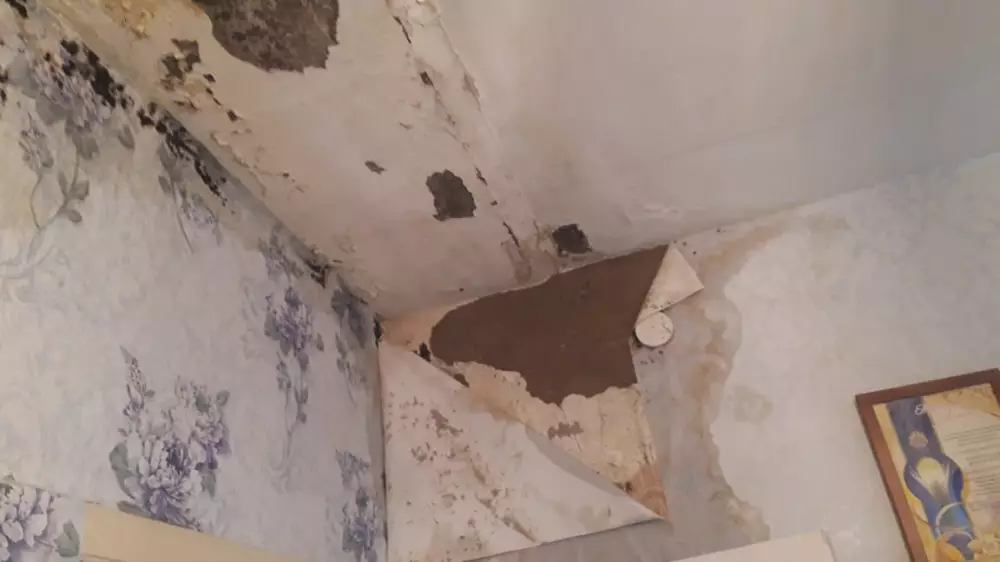 В больницу района Беимбета Майлина Костанайской области врач-фтизиатр Сергазы Бердиханов приехал четыре года назад вместе с супругой, которая тоже по специальности врач. Молодой семье выделили двухкомнатную квартиру. Они сделали в ней небольшой косметический ремонт, а с первыми осадками заметили, что течет кровля. Из-за этого обои отошли, а на стенах появилась плесень.