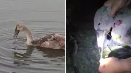 Жители села Мамлютка Северо-Казахстанской области спасли лебедя, который умудрился проглотить рыболовный крючок от спиннинга, а вместе с ним еще и целый моток лески. Когда она обмоталась вокруг лап, шеи и туловища и не давала нормально дышать, молодая птица поплыла к людям за помощью, передает корреспондент Tengrinews.kz.