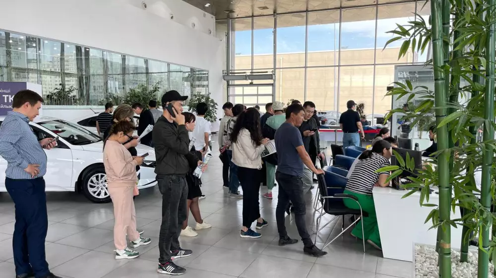 Горожане с самого утра собираются в автосалонах. В салонах на проспекте Туран очереди продолжаются на улице. Многие возмущаются неясными условиями программы.