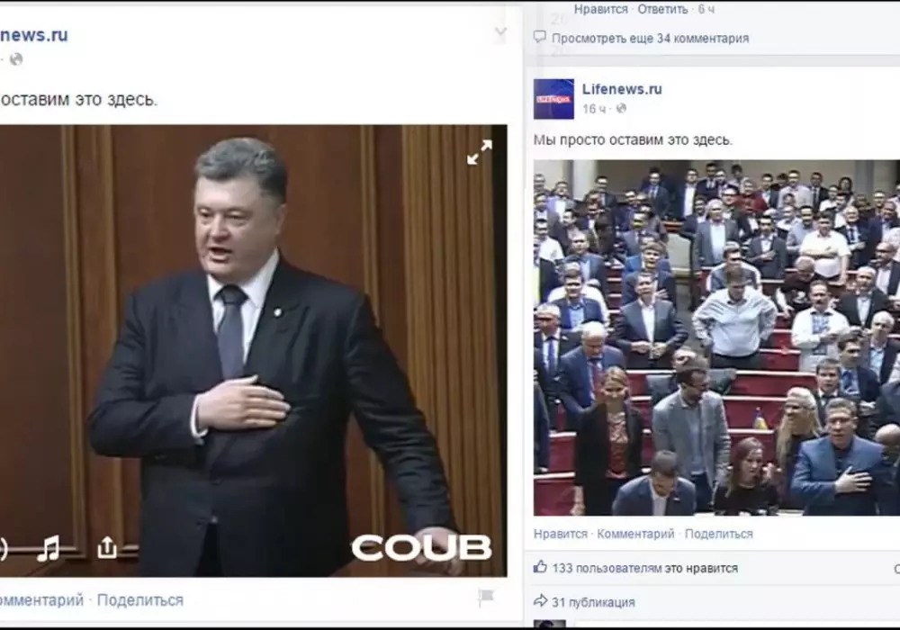 Напомним, видеролик был опубликован в сообществе LifeNews на Facebook утром 16 июля. Он сопровождал новость с заголовком: "Порошенко устроил музыкальный батл с Ляшко в Верховной Раде".