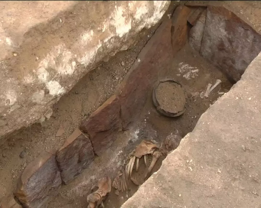 Всего специалистами найдено три каменных склепа эпохи бронзы. Поразил археологическую экспедицию скелет двухметрового мужчины, найденный в одном из захоронений. Археологи считают, что обнаруженные останки принадлежат вождю.