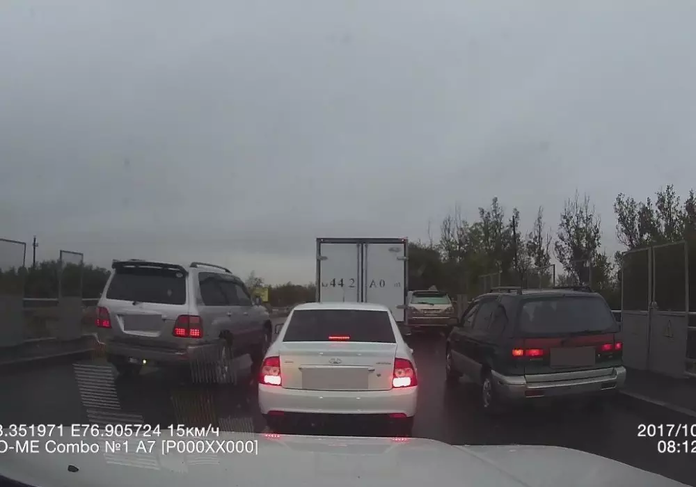 Лишение прав грозит водителю внедорожника, объезжавшему пробку в Алматы по встречке