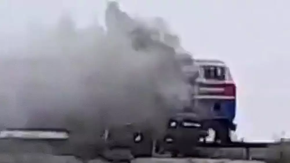 Локомотив горел в Кызылординской области Кадр из видео