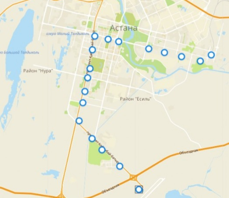На линии предусмотрено 18 станций и 19 поездов. Об этом сообщили в акимате столицы. Так, маршрут начинается от международного аэропорта и доходит до железнодорожного вокзала "Нұрлы жол".