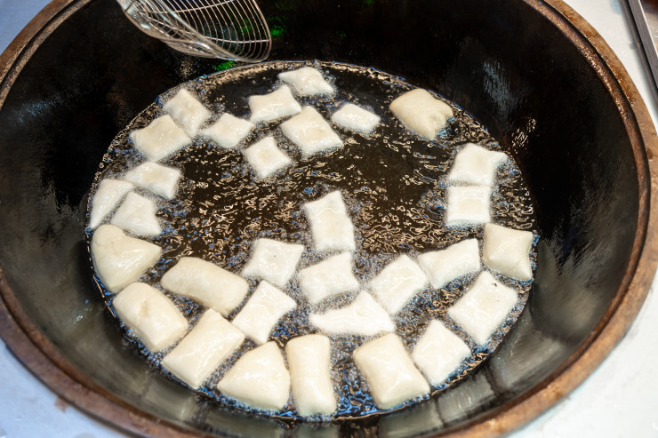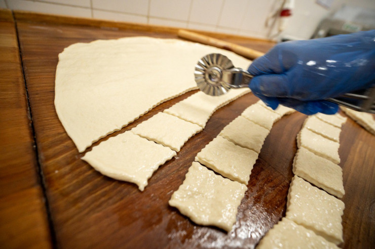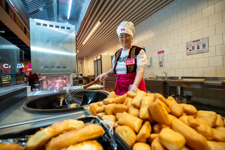 А в кулинарном цехе вовсю "колдуют" над тестом. Замес, нарезка, расстойка, и вот пышные и румяные баурсаки уже готовы.