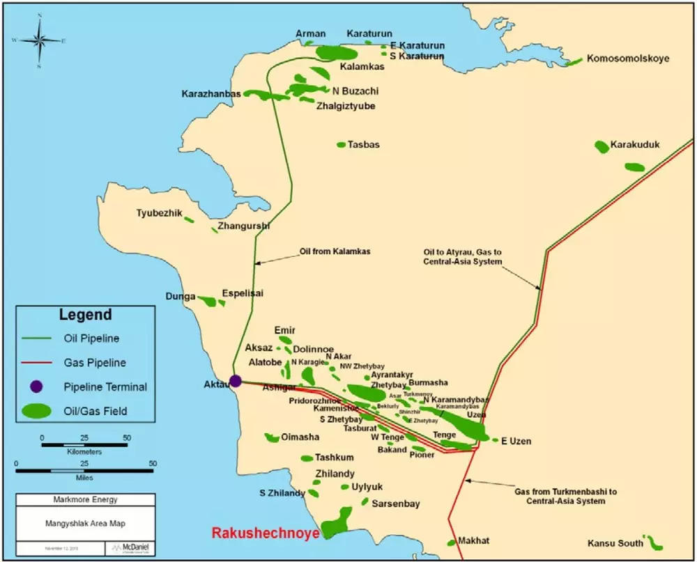 Месторождение Ракушечное расположено в западном Казахстане, в 15 километрах от Каспийского моря и 105 километрах к юго-востоку от Актау. "Входная цена для Sumatec на Ракушечное очень низкая с учетом объема запасов. Низкие затраты и тот факт, что месторождение находится на этапе добычи, делает это очень привлекательным для первой инвестиции "нового" Sumatec", - считает Далтон.