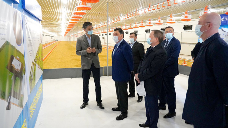 В Тупкараганском районе глава правительства посетил введенную в эксплуатацию в апреле 2021 года птицефабрику ТОО "Актау Агро". Предприятие включает инкубаторный цех, производственный комплекс и убойный цех мощностью 5 тысяч тонн курятины в год. Птицефабрика позволит обеспечить 50 процентов потребности внутреннего рынка Мангистауской области в мясе птицы. Первую партию продукции планируется поставить на торговые прилавки региона в конце июня 2021 года.