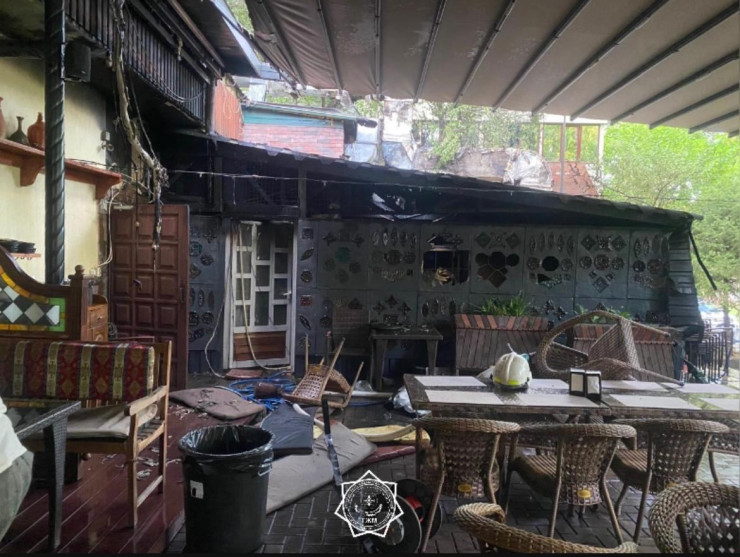 Прибыв на место через пять минут, они обнаружили, что горит мангальное помещение, примыкающее к ресторану "Мимино". Площадь пожара составила 42 квадратных метра.
