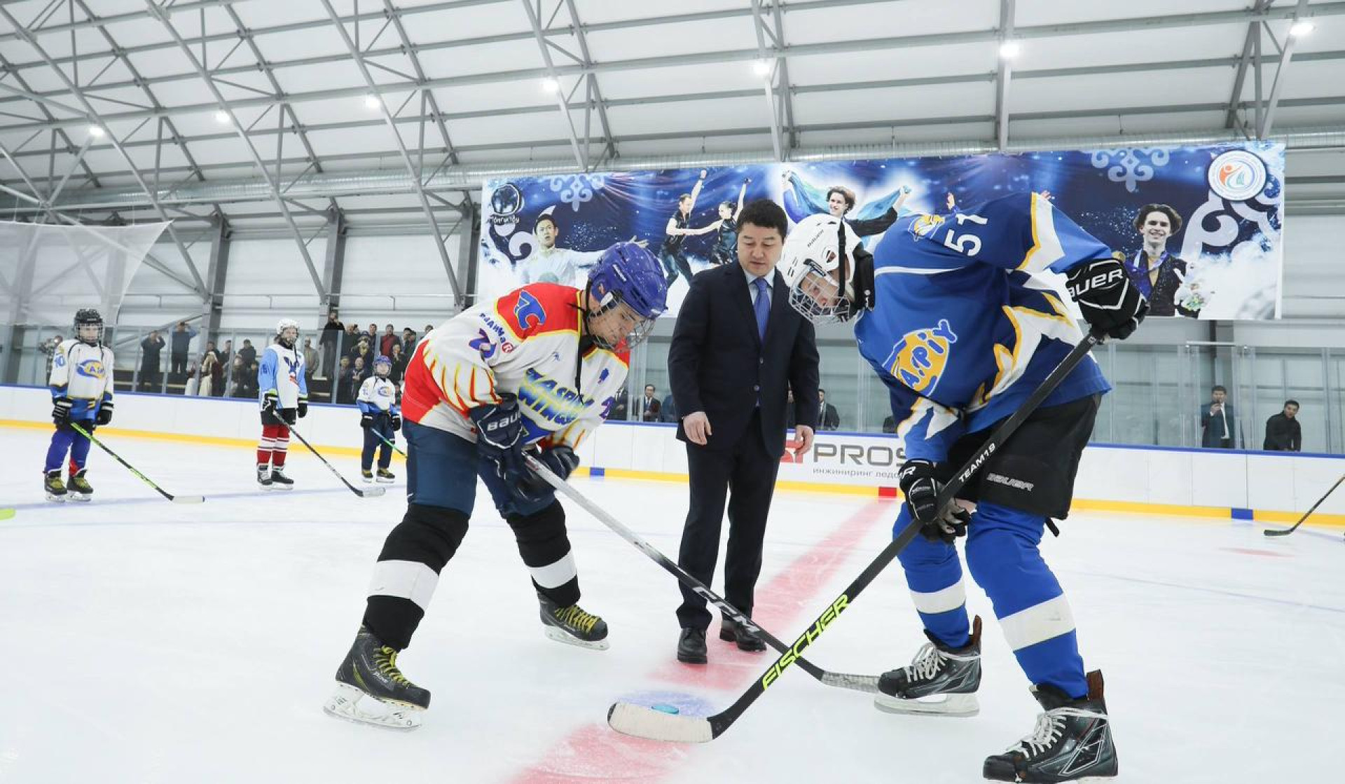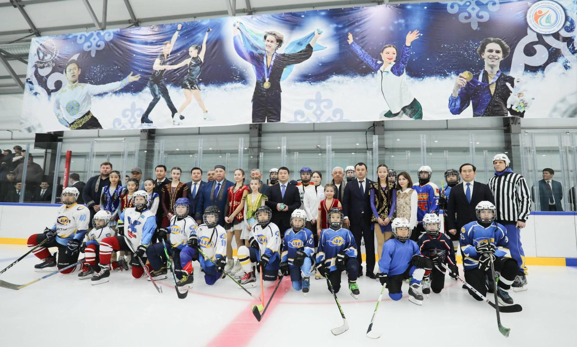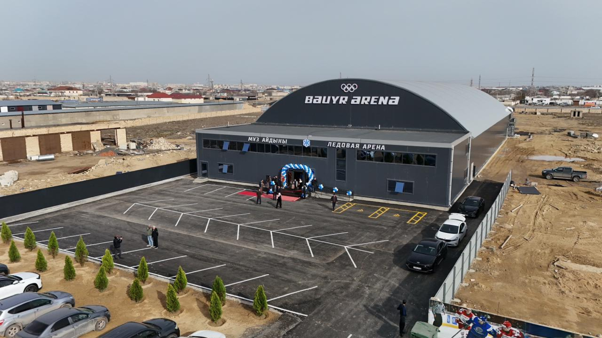 Открытие ледового дворца началось с символичного перерезания ленты. В нём приняли участие председатель Мангистауского областного маслихата Жанбырбай Матаев, предприниматель и директор ТОО "Бауржан ЛТД" Улыкпан Кобесов, мастер спорта международного класса по фигурному катанию, пятикратная чемпионка Казахстана, уроженка Жанаозена Гаухар Наурызова, а также мастер спорта международного класса по хоккею с шайбой, главный тренер Мангистауской области Дмитрий Шахов, приглашённый тренер из Санкт-Петербурга — кандидат в мастера спорта по фигурному катанию, старший тренер Мангистауской области Алена Панкратова.
