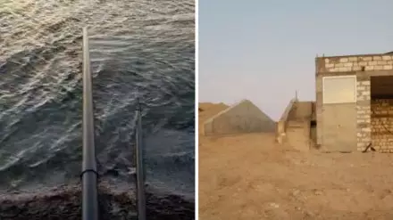 Пластиковые трубы, уходящие в море, люди заметили в прошлые выходные на земельном участке, располагающемся между базой отдыха WestHome и домом отдыха "Сая", примерно в 13 километрах от Актау. На данной территории последний год-полтора ведется активное строительство.
