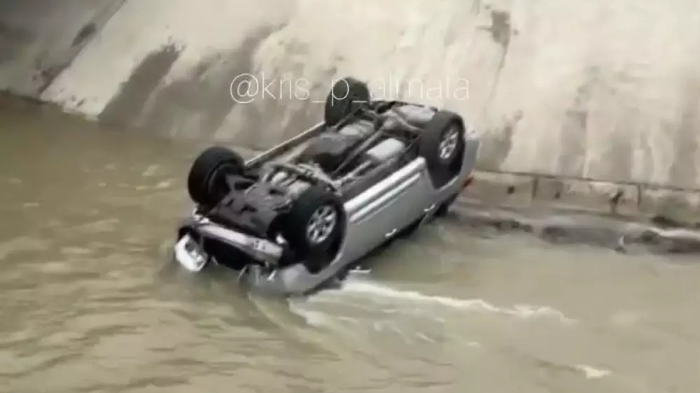 Машина упала в воду близ станции Шамалган в Алматинской области, передает корреспондент Tengrinews.kz. Видео появилось в социальных сетях.