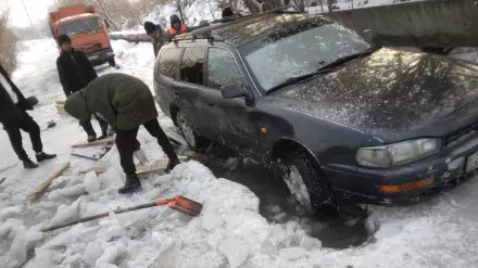"Поселок Белбулак, улица Пушкина, не доезжая до Алтынсарина. Здесь у нас такая проблема, причем эта проблема не первый год. На протяжении 10 лет все время идет вода из канала. Когда сильные холода, она замерзает и выходит, соответственно, на улицы и топит наши дома. Здесь не то что проехать, даже ходить невозможно. Посмотрите, КамАЗ не может вытащить машину. Машина уже с ночи стоит, ее отапливают. Если не решите проблему, то даже не знаю уже, к кому обращаться", - сообщает один из местных жителей на видео.