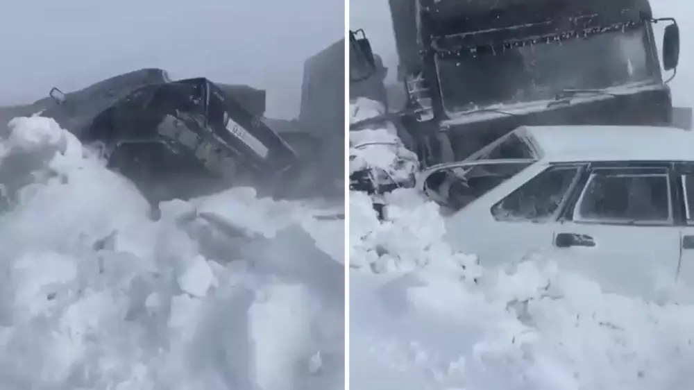 Видео с места происшествия записали и разместили в Instagram очевидцы. На кадрах видео запечатлены утопающие в снегу разбитые грузовые и легковые авто.