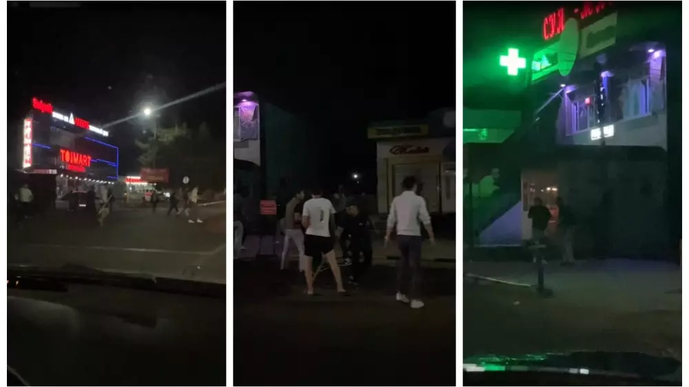 Драка произошла примерно в два часа ночи. На кадрах видно, что конфликт развернулся по обеим сторонам центральной улицы. В руках у некоторых парней видны палки.