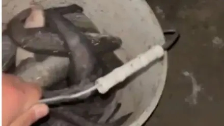 На этот раз жертвой стала молодь сома. Местные жители начали собирать погибшую рыбу в емкости, предположительно, не для ее спасения.