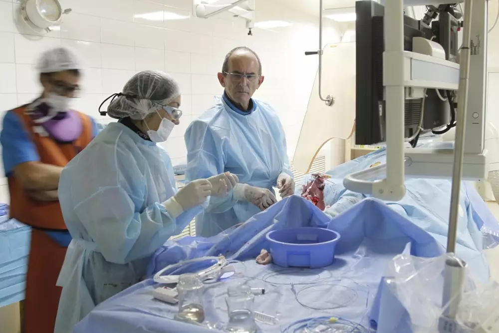 "Мы внедряем стенты последнего поколения, которые имеют гибридную форму. Это позволяет их имплантировать в более извитые сосуды, более мелкие артерии с тонким профилем. (...) Приезд профессора - это обмен опытом. Все-таки их уровень с нашим разнятся. Дело не в количестве и сложностях операций на сердце, а в опыте. Мы все-таки начали проводить такие операции позже", - рассказал заведующий отделением интервенционной кардиологии Данияр Маханов.