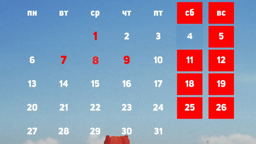 Таким образом, казахстанцы при пятидневной рабочей неделе будут отдыхать 1 мая - в среду, затем 5-го - в воскресенье, затем 7, 8 и 9 мая - во вторник - четверг и 11-12 мая - в субботу-воскресенье. Работать придется 2-4 мая - в четверг - субботу, 6 мая - в понедельник и 10 мая - в пятницу.