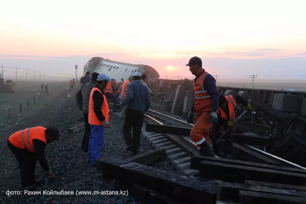 Между тем пресс-служба департамента внутренних дел (ДВД) на транспорте МВД Казахстана в распространенной информации сообщает, что с рельсов сошли 11 вагонов, восемь из которых опрокинулись. По данным транспортной полиции, "за медицинской помощью обратились 44 пассажира, из них 21 госпитализирован, жертв нет".