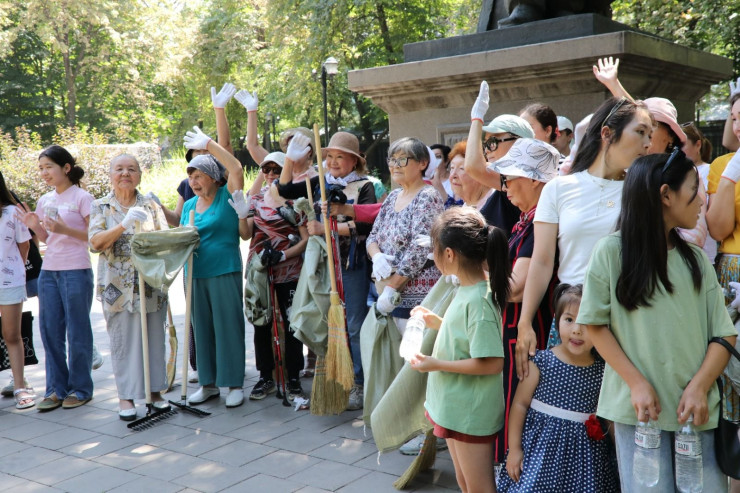 Затем молодежь из числа резидентов комьюнити-центров и представители старшего поколения, посещающие центры активного долголетия, объединив усилия, навели порядок на набережной реки Улкен Алматы. Всего собралось порядка 80 пенсионеров из числа посетителей центров активного долголетия и 120 участников "Жасыл ел" и комьюнити-центров.