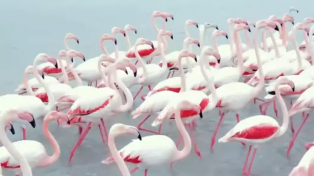 "Мекка орнитологии, как в Дубае". Фламинго вновь засняли на озере Караколь Кадр из видео