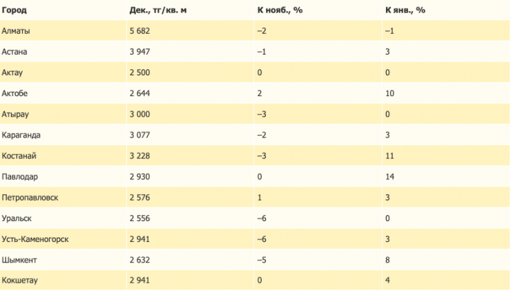 - Алматы, Караганде: по —2 процента;