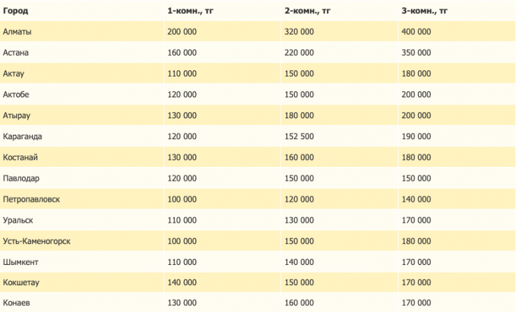 - в Актау, Павлодаре, Кокшетау цена на аренду не изменилась;