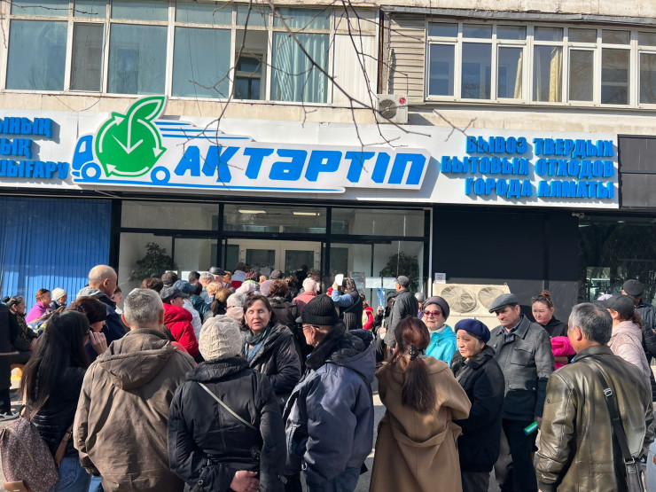Недовольные некорректными данными в квитанциях за вывоз мусора алматинцы выстроились в огромную очередь у здания компании, ответственной за вывоз мусора.