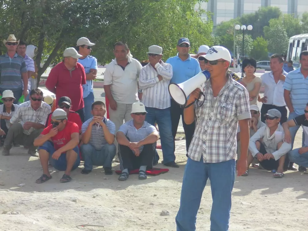 В 9 утра на "пятачок" через дорогу от областного акимата стекается народ. Бастующие рабочие АО "Каражанбасмунай" и двух его подрядных ТОО - "Тулпар Мунай Сервис" и "Аргымак Трас Сервис" - сидят здесь до 6 вечера. После чего проводят собрание, как говорят, поднимающее командный дух, сворачивают "корпешки" и расходятся по домам. Люди не ходят на работу с 17 мая. Одно из их главных требований касается отраслевого коэффициента 1,8.