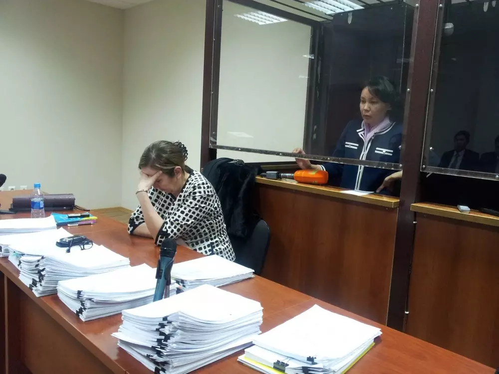 Мешимбаева выступила в суде с последним словом На фото адвокат Ботакоз Бейсембаева и Анар Мешимбаева.Фото Асель Сатаевой.