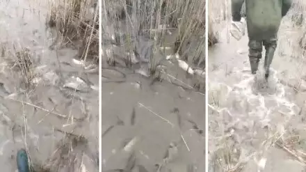 Видео опубликовал пользователь Facebook Ермак Данияров. По словам автора, кадры были сняты в Узынкольском районе Костанайской области, где расположено много озер и рек. А рыба - один из природных видов продукции.