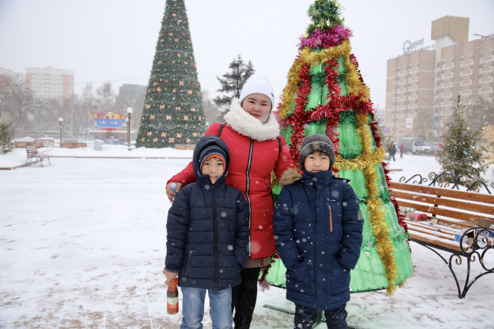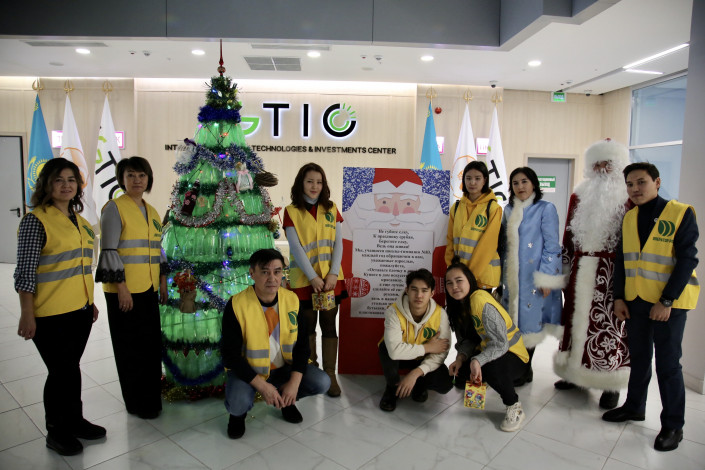 Стоит отметить, что накануне эко-елка была выставлена на территории Дворца молодежи "Жастар". Именно там организаторы акции собрали ее и дали возможность горожанам с ней "познакомиться".