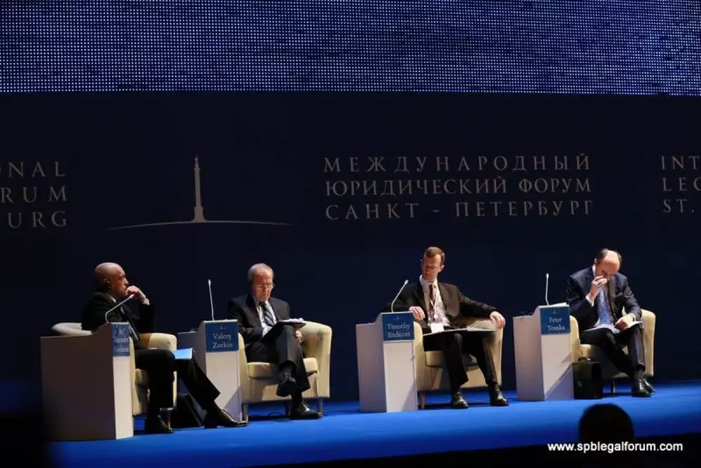 Борисенко отметила, что подобные юридические мероприятия проводятся не только в Санкт-Петербурге, но и в других странах. "Площадка Петербургского форума - это платформа для диалога Востока и Запада. И Россия, находясь посередине, выступает идеальной площадкой для того, чтобы такой диалог организовать. Обсуждая со многими странами правовую проблематику, мы выявили, что есть недостаток нашего двустороннего диалога, который мы не всегда можем построить в рамках межгосударственных отношений", - сказала замминистра.