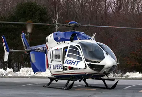 Крейсерская скорость вертолета EC145 - около 245 километров в час. Дальность полета - до 680 километров, грузоподъемность около 1,8 тонны. Машина предназначена для транспортировки девяти человек.