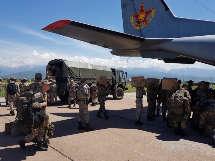 Командующий Десантно-штурмовыми войсками СВ ВС РК генерал-майор Каныш Абубакиров провел строевой смотр и инструктаж личного состава, убывающего в Арысь для выполнения поставленных задач.