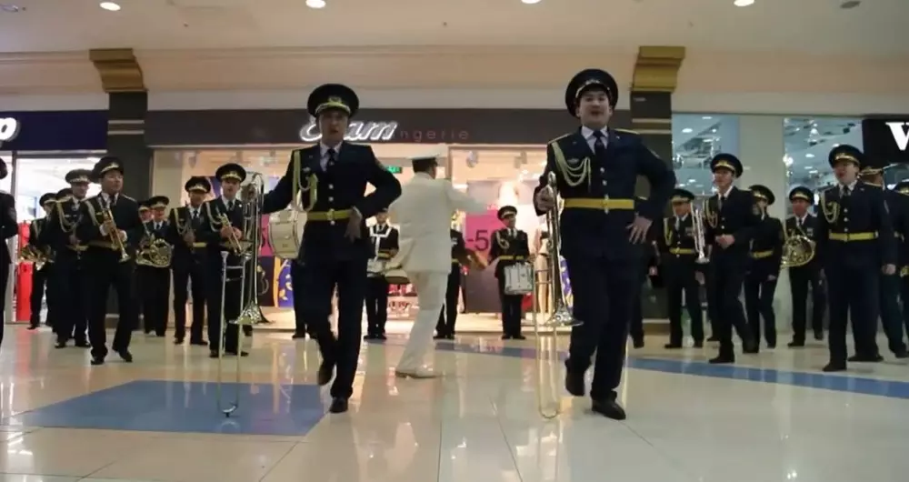 Видео действия выложили на youtube.com. "Центральный военный оркестр Министерства обороны Казахстана устроил новогодний сюрприз для астанчан, неожиданно появившись в одном из торговых центров c новогодним маршем. Самый танцующий оркестр. Ребята отожгли по полной. Дирижер - Тимур Джартыбаев", - говорится в описании к видео.