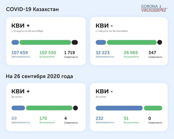 Сообщается, что от коронавируса за этот же период скончались четыре человека. Всего от пневмонии с 1 августа умерли 347 казахстанцев, а от COVID-19 с начала пандемии - 1 719.