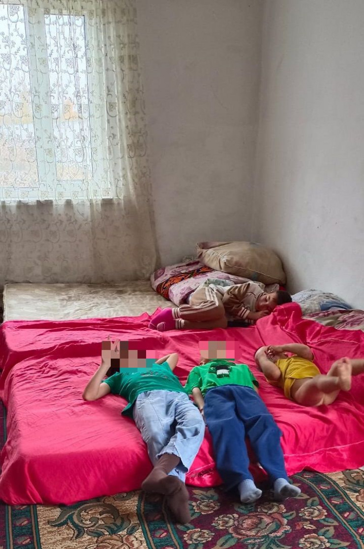 Многодетная семья проживает в небольшом дачном домике на окраине областного центра, в поселке Тасбогет. В доме три комнаты, вместо дверей висят одеяла.