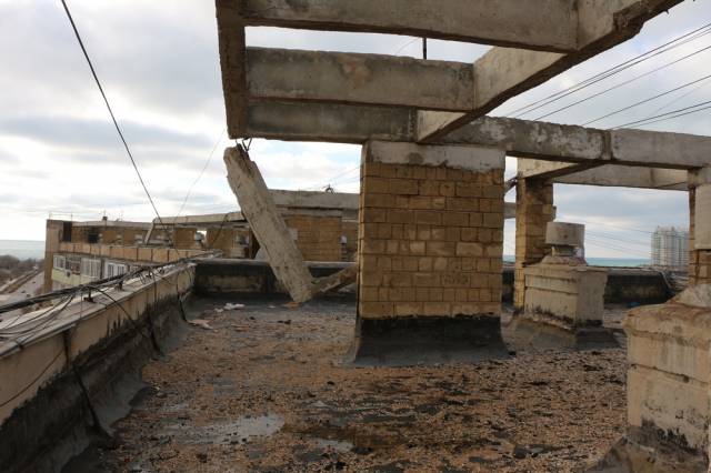 Конструкция на крыше, предназначенная по проекту для защиты строения от прямых солнечных лучей, вот уже 12 лет угрожает безопасности всего дома. У жильцов трескаются и протекают потолки. Оказалось, что еще в 2005 году представители ЧС признавали ситуацию чрезвычайной, сама же проблема возникла годом раньше. Но сих пор дело не сдвинулось с мертвой точки.