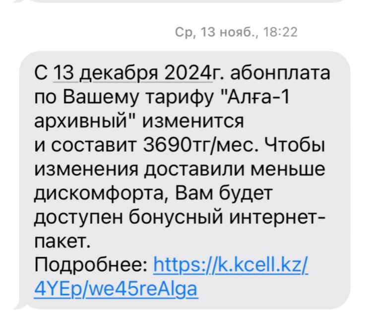 Ранее абонентам Kcell и Activ пришли сообщения о повышении абонентской платы по тарифам.