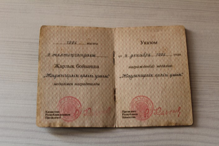 Кейіннен елге оралдық. Алматыда да госпитальде ұзақ жатып емделдік. Елбасының атынан "Жауынгерлік ерлігі үшін" медалімен марапатталдық.