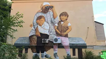 Мурал располагался на фасаде жилого дома по улице Сейфуллина.