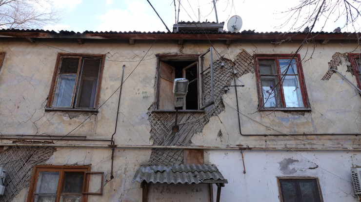 "Нам с 2014 года обещают переселение... Каждую ночь засыпаем и молимся, чтобы утром проснуться. Чтобы, не дай бог, ничего не обрушилось или кто-нибудь дом не поджог", - жалуется она.